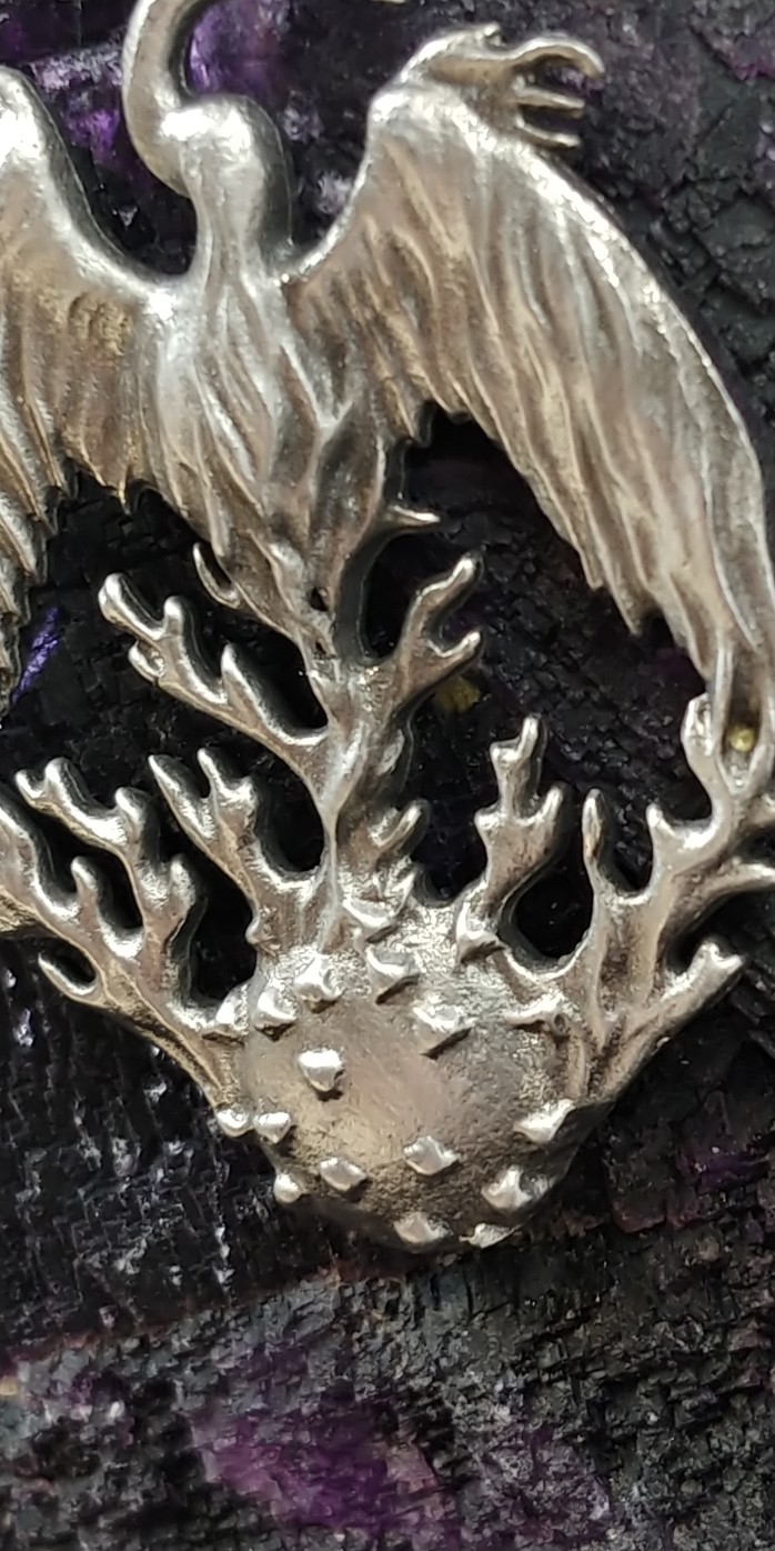 The Phoenix or similar fire bird can be found across many cultures Native American folklore, Asian, Greek, Celtic and Egyptian mythology. The bird either is associated with or comes from the sun. It’s scarlet and gold plumage flashed brightly, reminiscent to solar flares. The grand bird is said to live for several hundred years. As the phoenix came to the end of it’s days it built a glorious nest of spices and aromatic boughs and set it on fire; being consumed by the flames. From those ashes a new phoenix rose giving us the symbol that we are familiar with - a magnificent creature, wings spread rising above the flames.