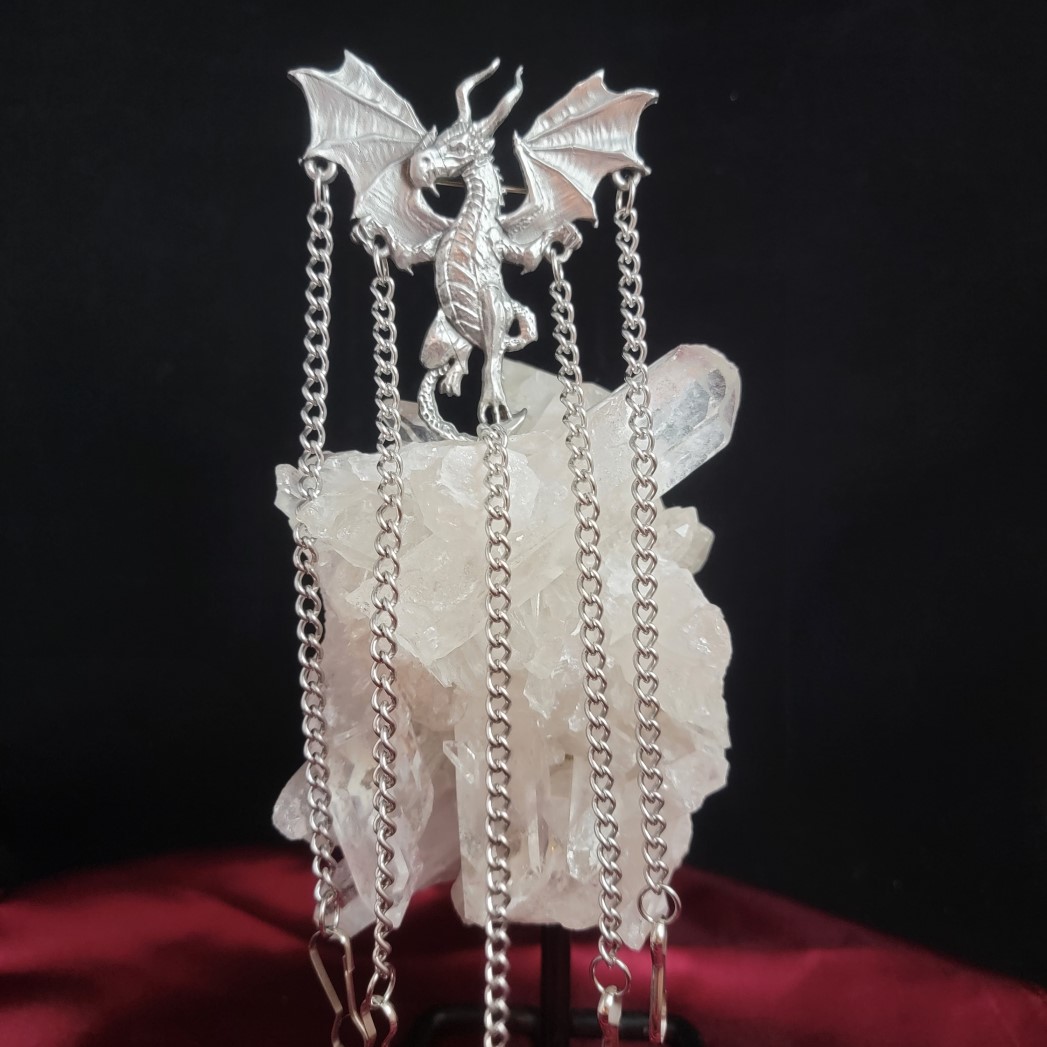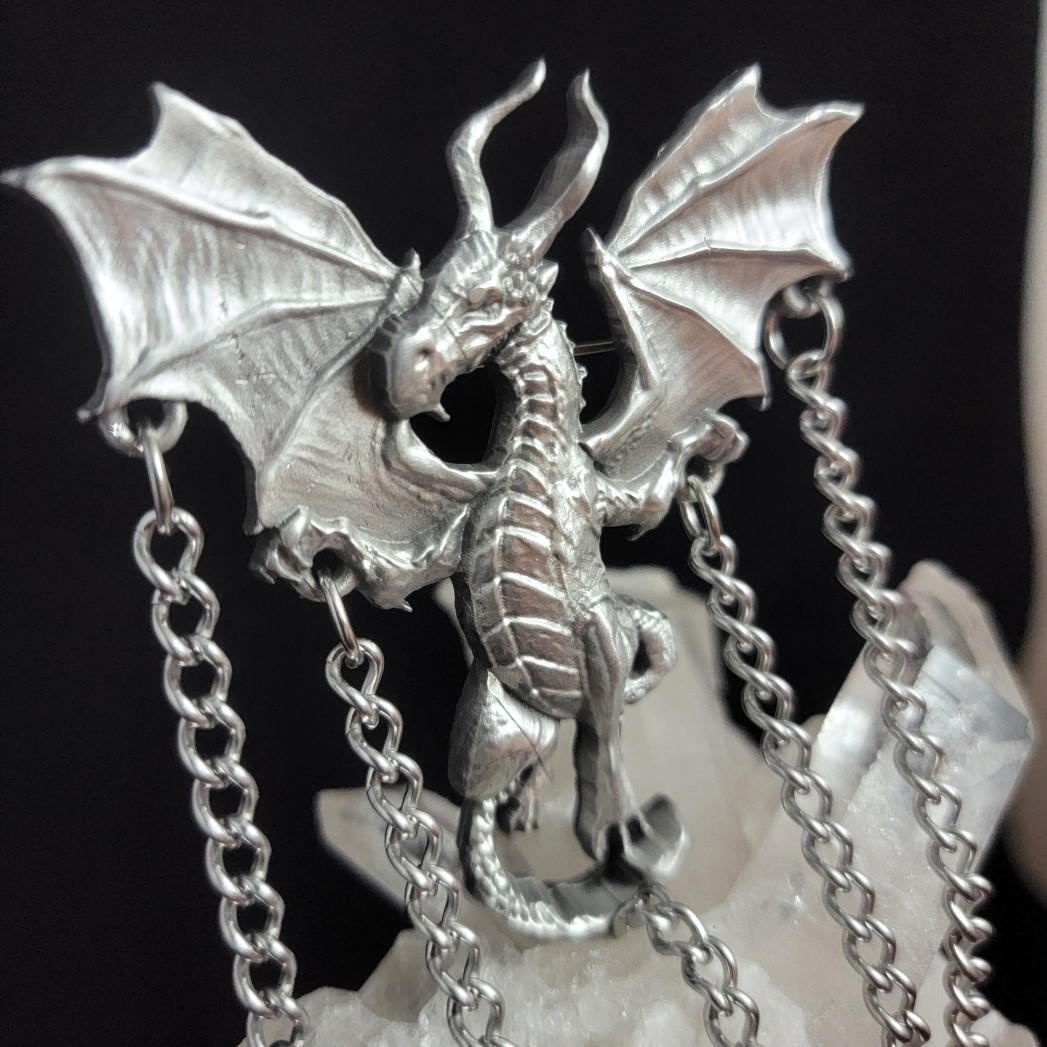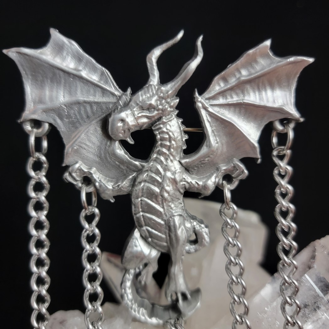 Protect your treasures with this stunning dragon hand cast in lead-free pewter. Measures 3 1/2"