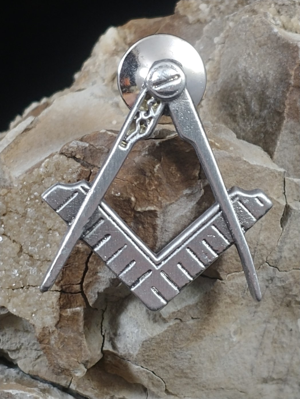 Masonic Pin made of hand cast, lead free pewter and measures 1" x 1-1/8"