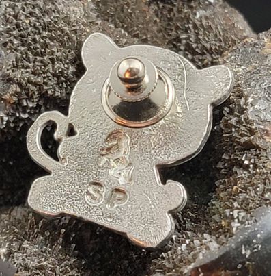 Made of hand-cast, lead free pewter and measures 1 1/8" in height. Push pin back with locking cap.