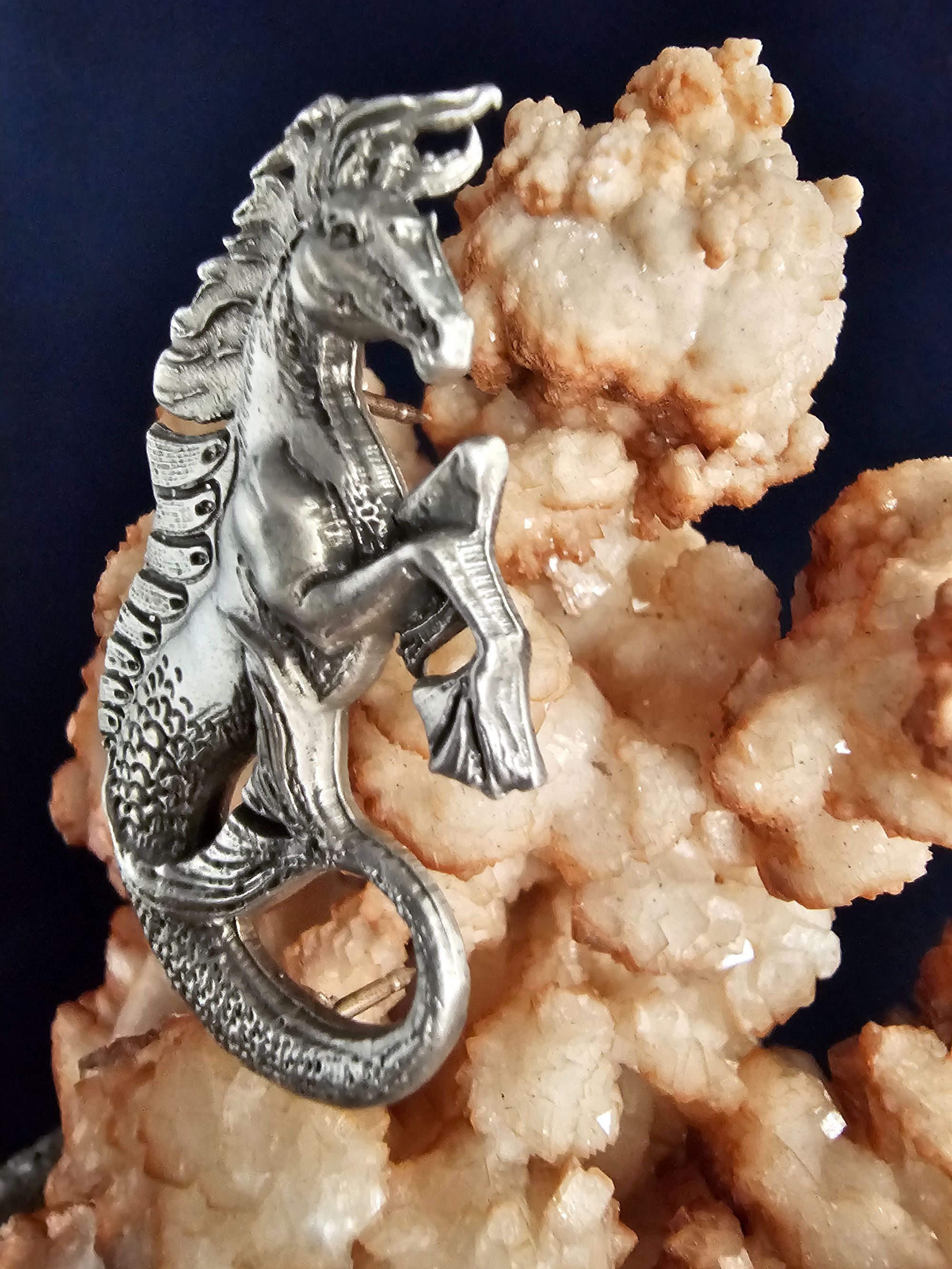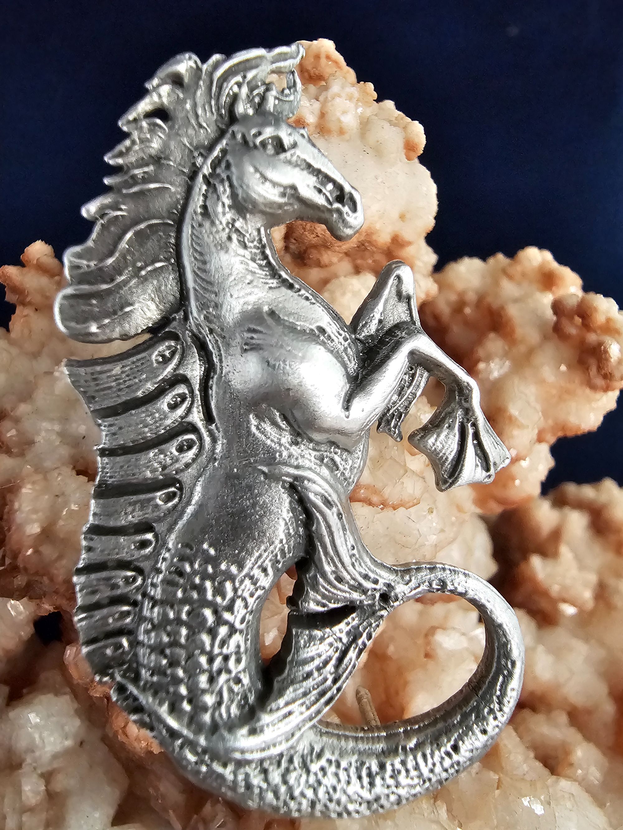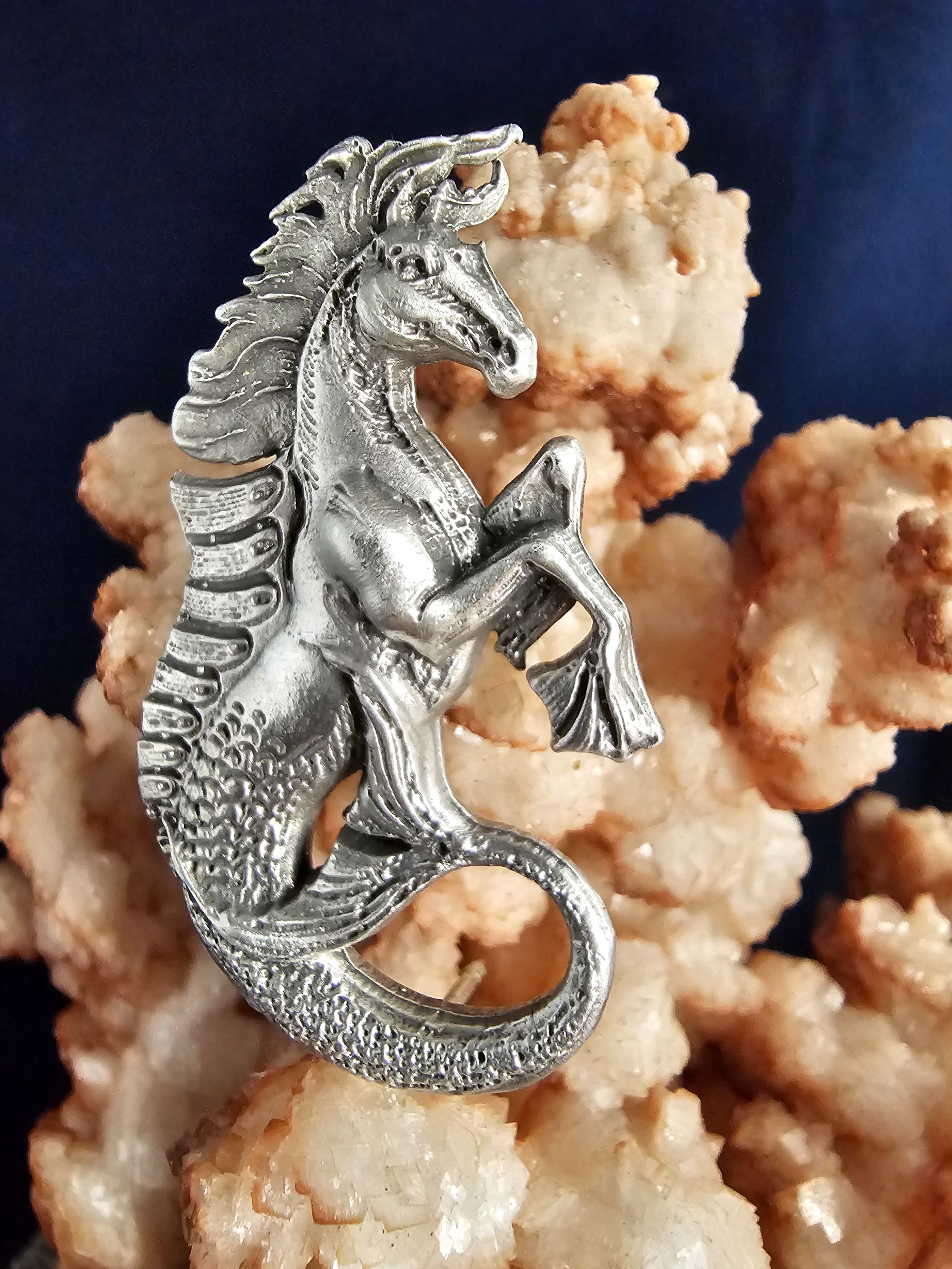 In the mythology, the hippocampus stands out not merely as a creature of the sea but as a symbol of divine power and protection. It's also associated with hope, strength, and agility due to its connection to the sea. The blending of equine grace and aquatic mystery captivates and charm us.