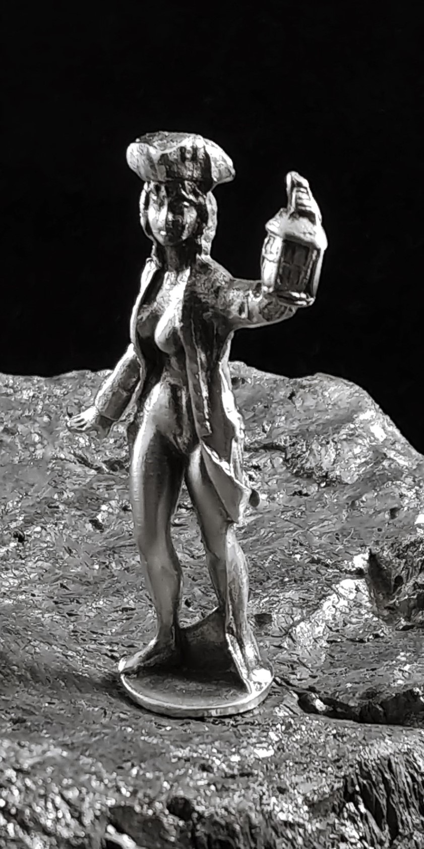 Molly is dressed in a regimental coat and holding a candle lantern high. Perfect for reenactors or pirates! A tamper is a blunt instrument with a base shaped like the top of a nail. While some are basic and utilitarian in nature - others are ornately shaped. The flat end of the tamper is used for tamping down tobacco when the bowl is being packed and for crushing the ash together to aid relighting. Tampers make a unique gift for recreational smokers.