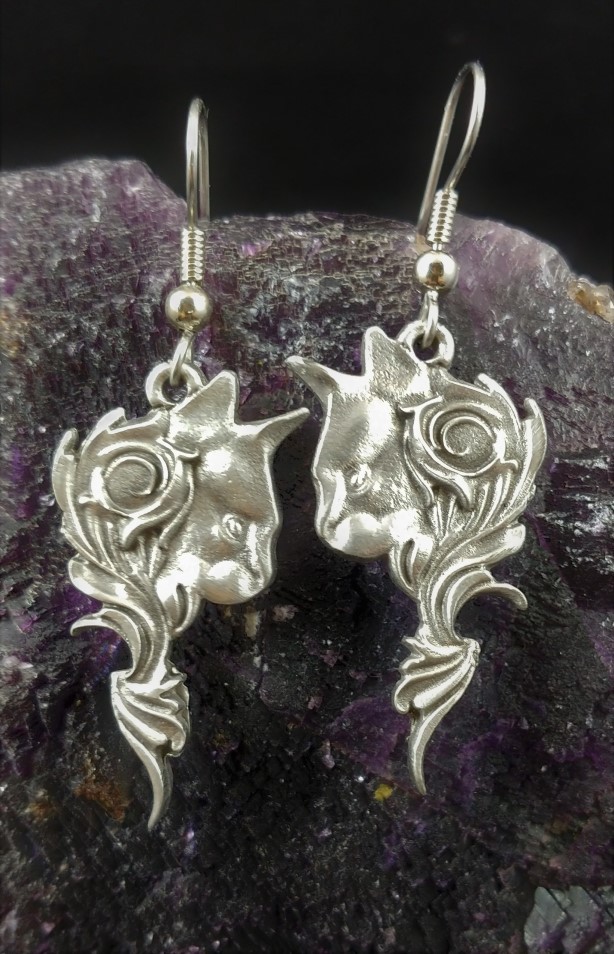 Double sided earring, made of hand cast, lead free Britannia Pewter. Surgical steel earring wires.