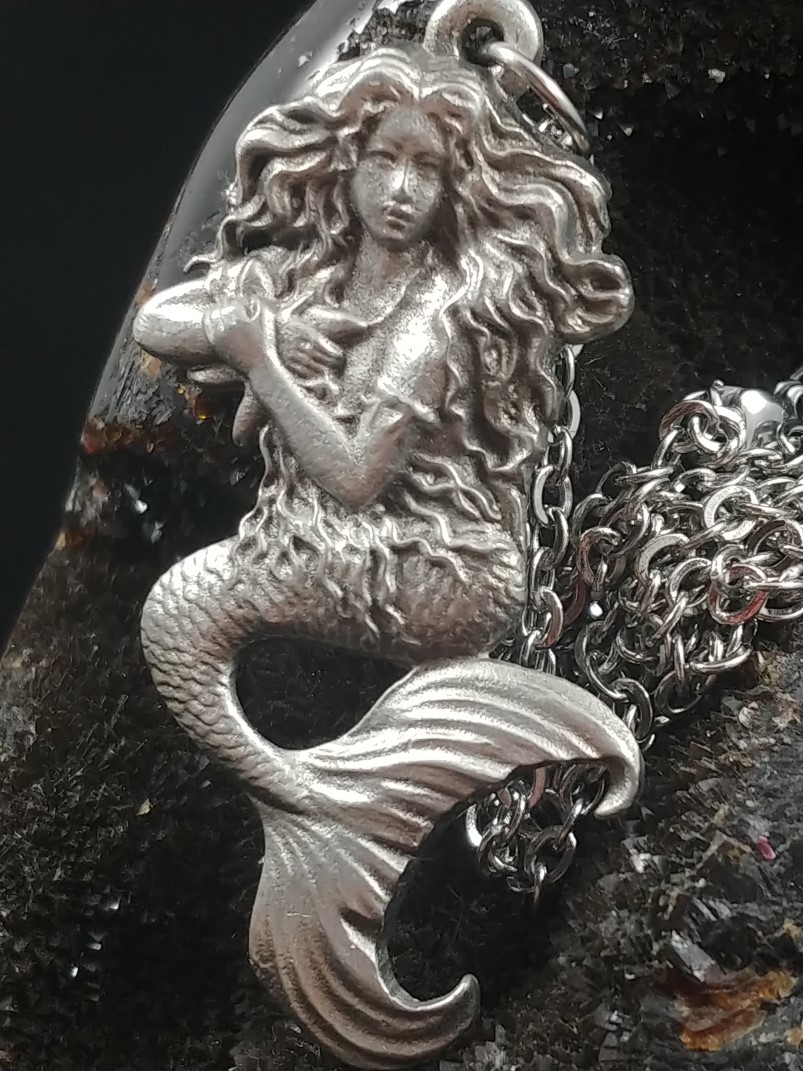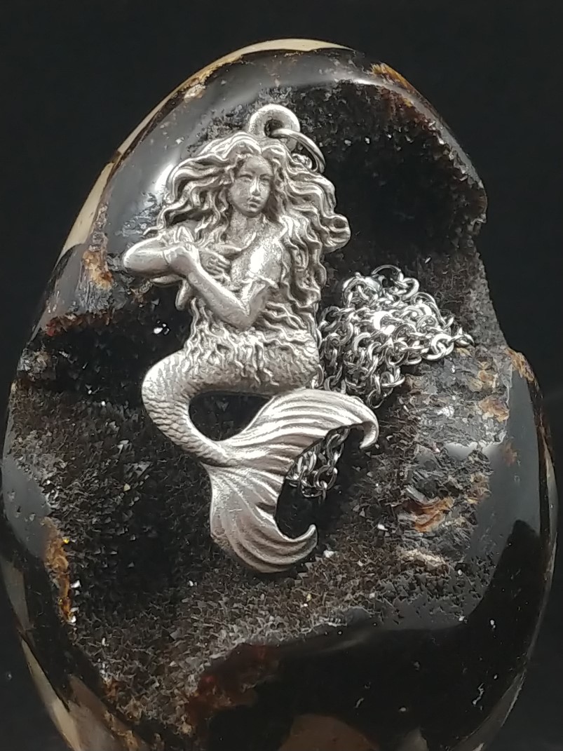 This goddess of the sea is made of hand-cast, lead free pewter. Mermaids and Mermen are human on the top half with a strong tail in place of human legs. Poet/Author Homer wrote of mermaids in The Odyssey (750BC). Mermaids in the ancient Far East, were the wives of powerful sea-dragons, and served as trusted messengers between their spouses and the emperors on land. The aboriginal people of Australia call mermaids "yawkyawks" – a name that may refer to their mesmerizing songs. Magical half female/half fish figures first appear in cave paintings in the late Paleolithic (Stone Age) period some 30,000 years ago. Legends report that the mermaid has the ability to foretell disaster and control ocean storms.