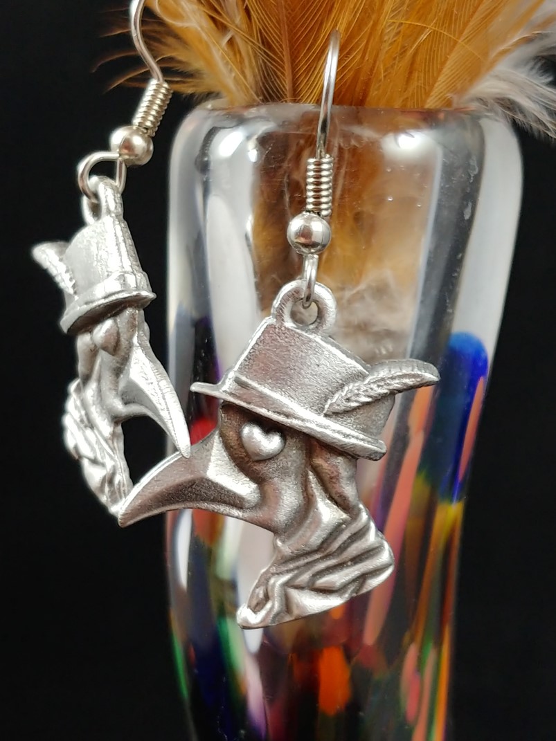 Made of hand cast, lead free pewter the earring charms measure 1" on surgical steel french hooks.