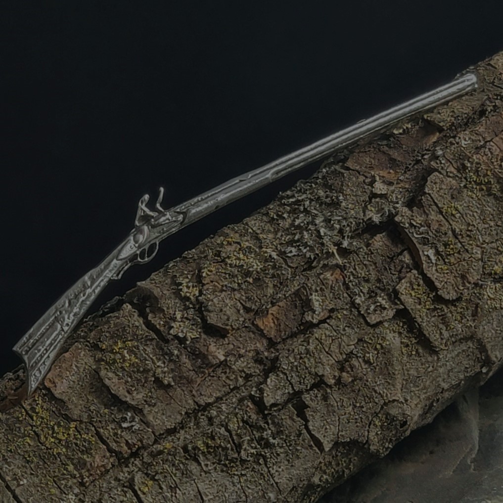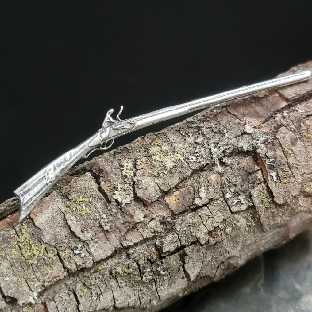 Kentucky flint lock, long rifle. Newly redesigned in 2022. Measures 2-3/4" x 1/2"
