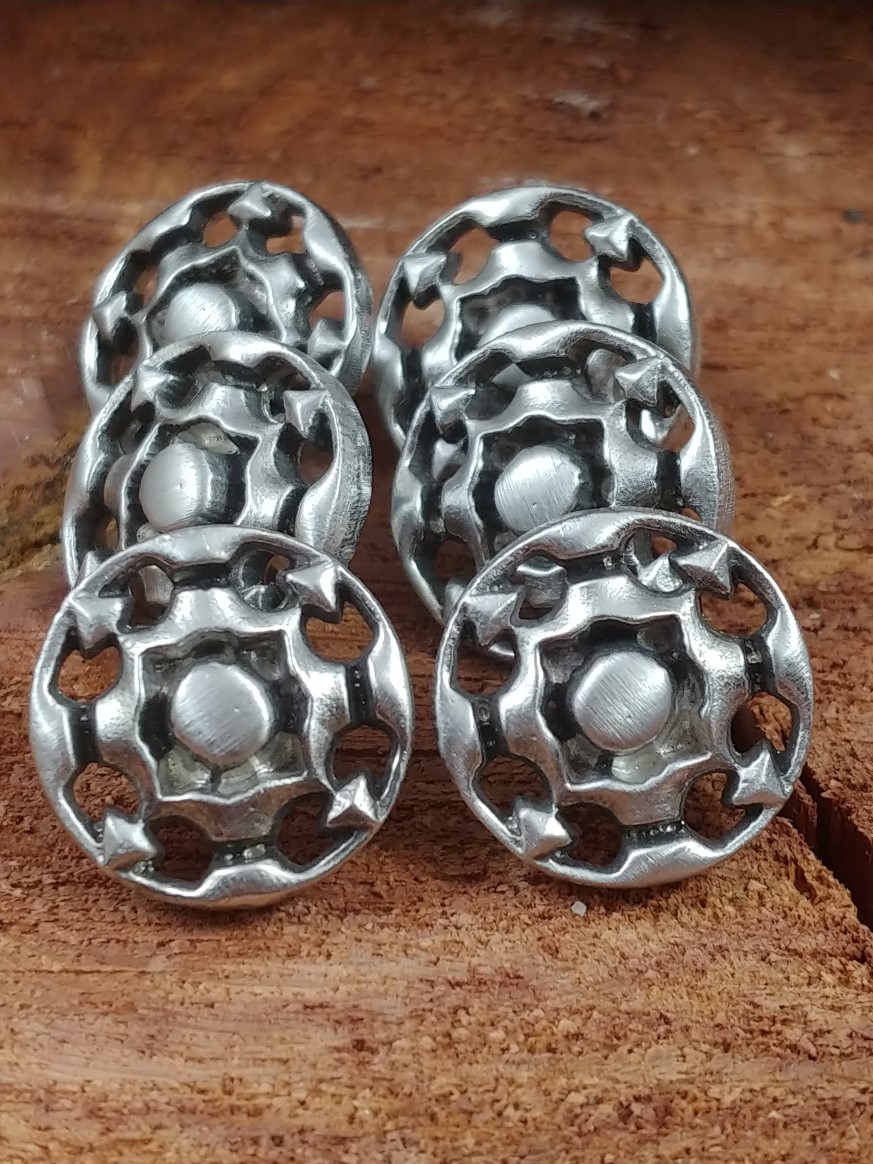 This elegant open design button is sure to complement the most beautiful of fabric. Made of hand cast, lead-free pewter these durable buttons are perfect for thick/heavy fabric.
