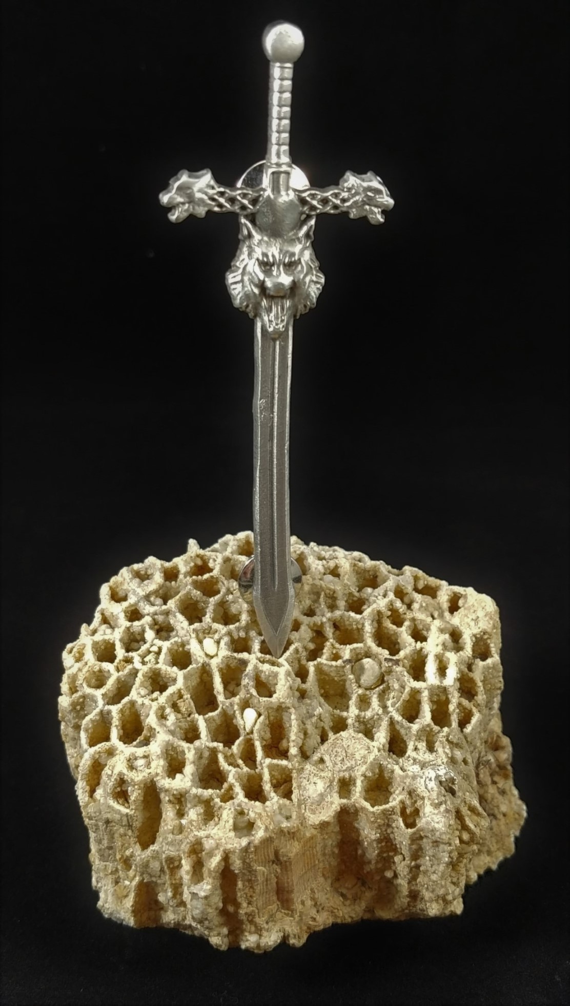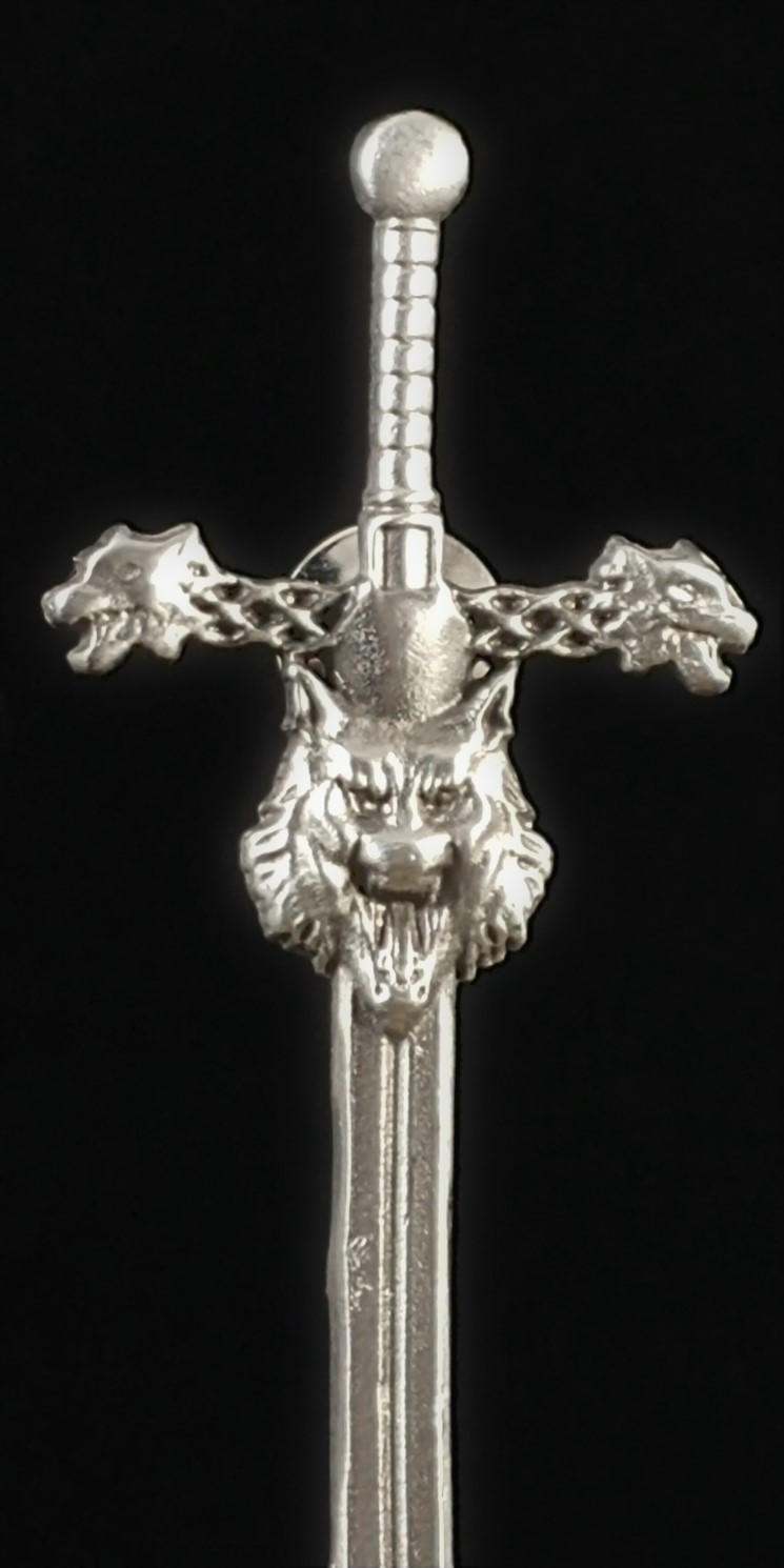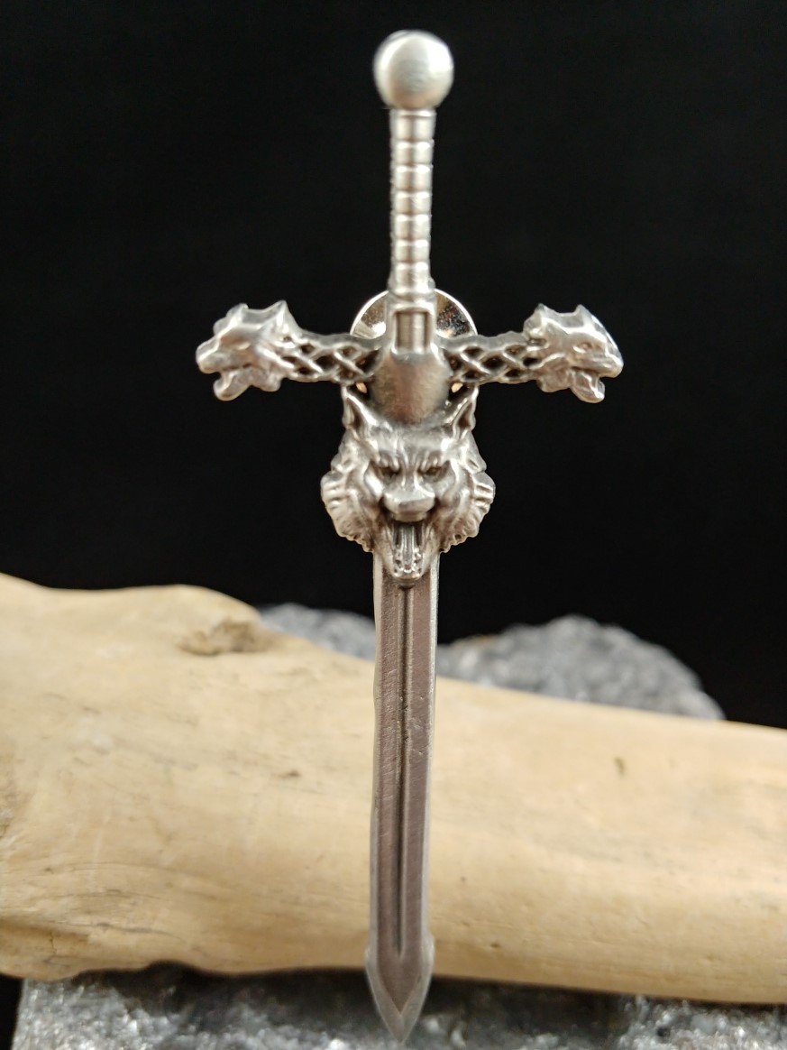 The kilt pin measures 3 1/2" in length and is made of hand-cast, lead-free pewter. Locking push pin backing.