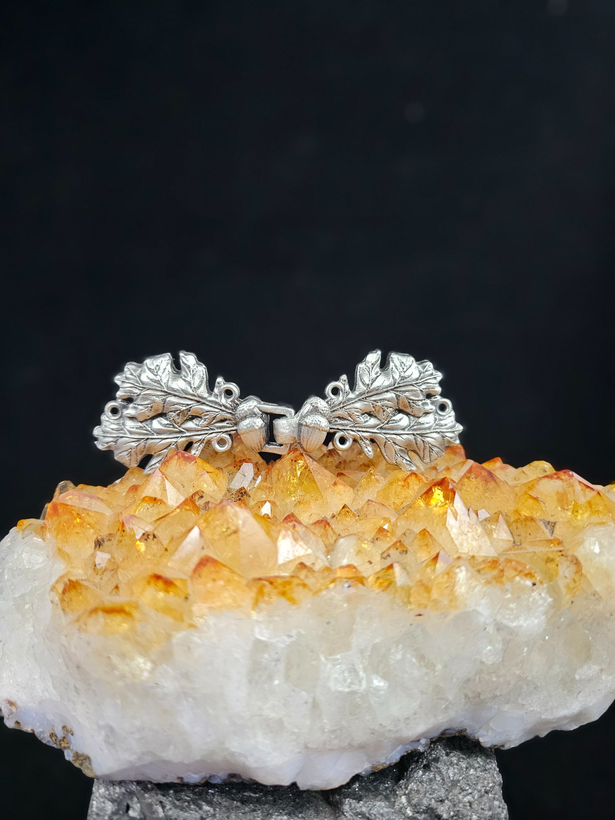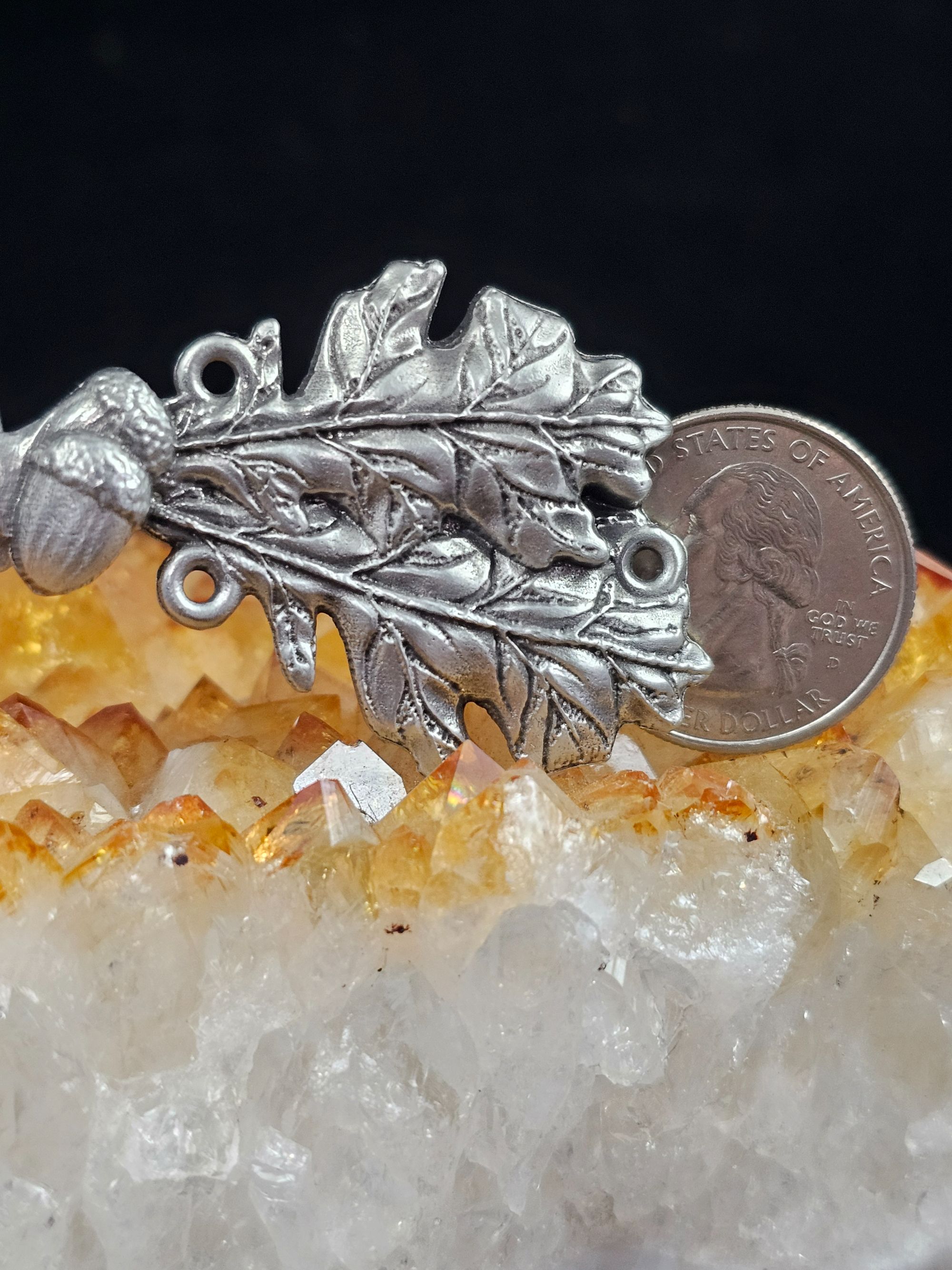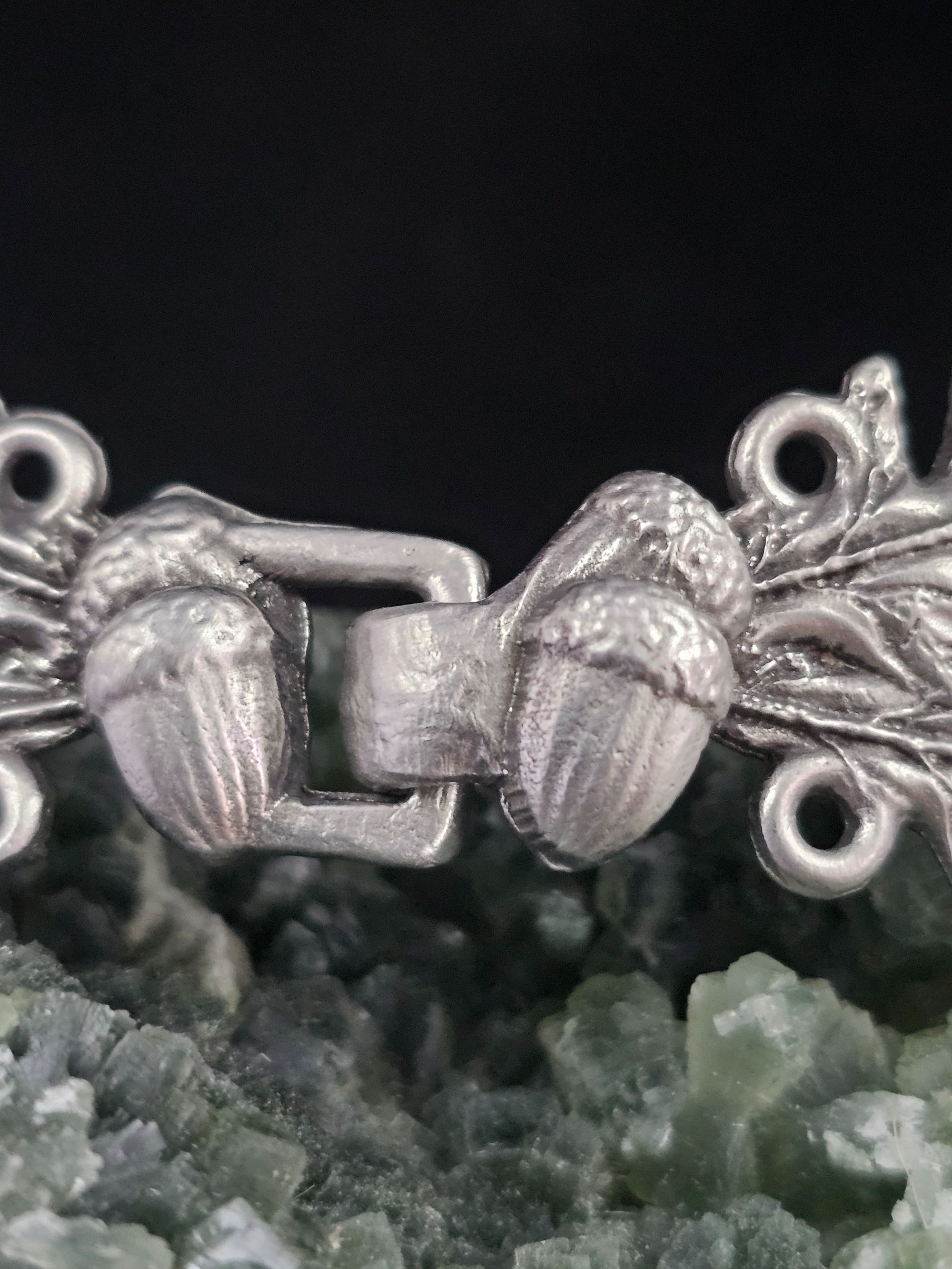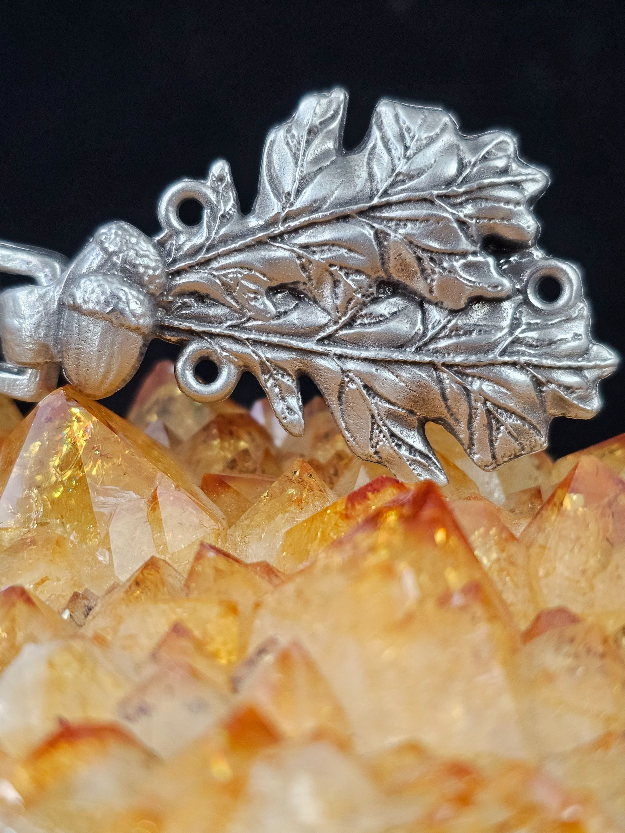 New design, this magical oakleaf cloak clasp is a perfect addition to your heavy weight cloak. Each side of the clasp has three loops for easy sew-in attachment. The hand cast pewter clasp has a secure hook/latch designed closure. Oak leaves symbolize strength, wisdom, and endurance.